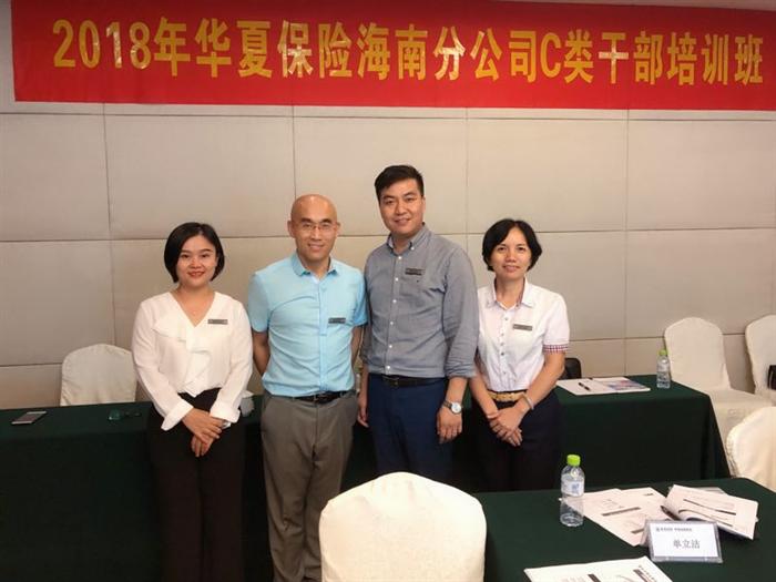 2018年8月17日,应华夏人寿保险股份有限公司海南分公司邀请,我公司特聘讲师史振钧老师为华夏保险全省各机构的17名C类干部培训《走向卓越的情商、逆商与智商》、《问题分析与解决》课程。培训在全省各机构的17名C类干部积极参与下圆满成功。 课程培训受到华夏保险领导和全省各机构的17名C类干部高度认可及感谢! 培训剪影: